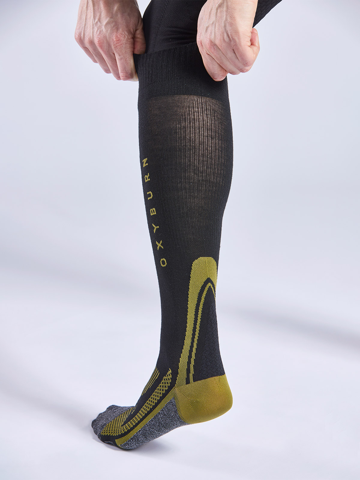 La compressione media graduata stimola il ritorno venoso e favorisce il ricambio del sangue ossigenato, riducendo la sensazione di pesantezza.